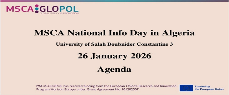 في إطار تعزيز القدرات المؤسساتية وتشجيع المشاركة في البرامج الأوروبية، يشرفنا أن نُعلمكم بتنظيم جلسة إعلامية مخصّصة للتعريف بالبرنامج الأوروبي لمنح التميز ماري سكودوفسكا-كوري (MSCA).