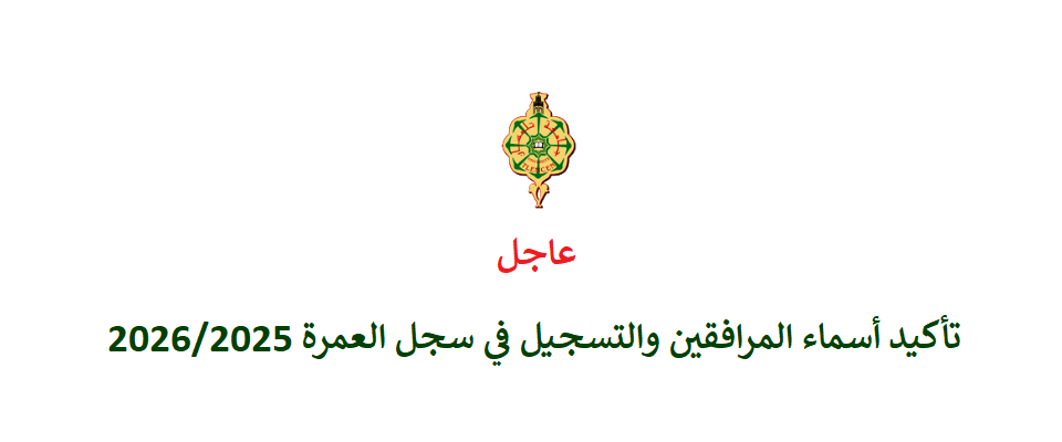 يتشرف رئيس لجنة الخدمات الاجتماعية بإبلاغ جميع المستفيدين من الحج الأصغر (العمرة) 2026/2025، والذين تم نشر قائمتهم بعد القرعة التي أجريت يوم الخميس 4 ديسمبر 2025