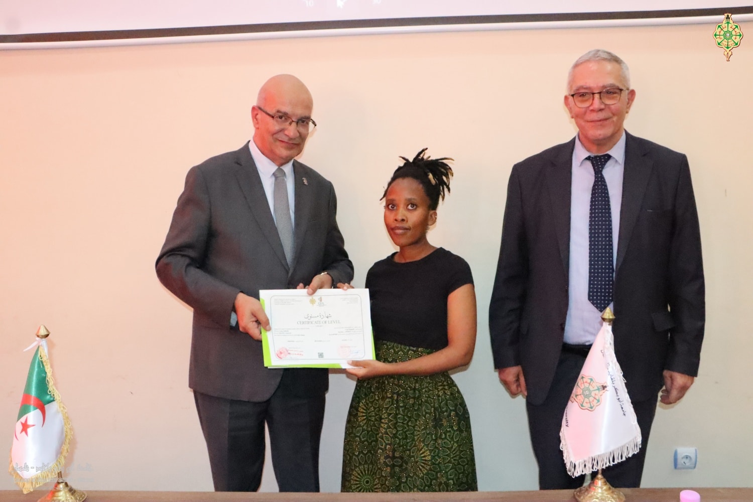 ألقت مديرة المركز السيدة نسيمة سعيدي كلمة ترحيبية عبّرت فيها عن فخرها واعتزازها بطلبة المعهد الإفريقي ودعتهم إلى مواصلة رحلتهم في تعلم اللغة العربية ضمن برنامج تعليم العربية للناطقين بغيرها، شاكرةً بالمناسبة جهود الأساتذة المؤطرين والطاقم الإداري.