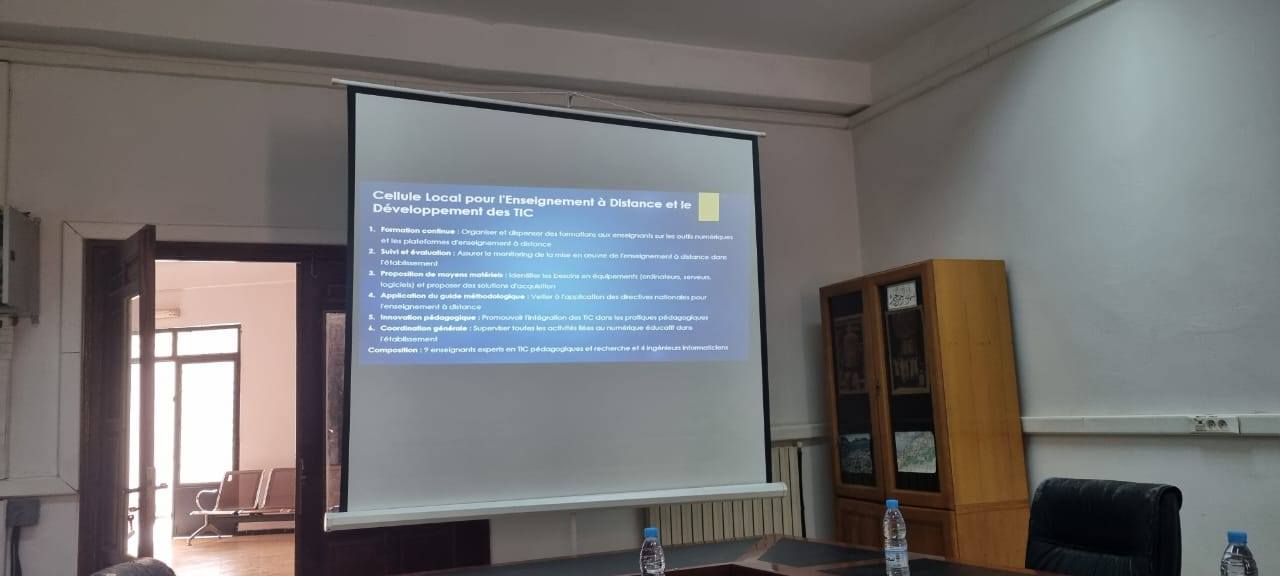 ثمن السيد المدير العمل الجاد الذي قامت به مختلف الخلايا: خلية المرافقة البيداغوجية للأساتذة حديثي التوظيف، خلية التعليم عن بعد، دار الذكاء الاصطناعي، خلية DUAL، خلية HPC، داعيا الجميع لمواصلة الجهود من أجل تنمية وتطوير الجامعة وتقديم أفضل الخدمات للأسرة الجامعية.