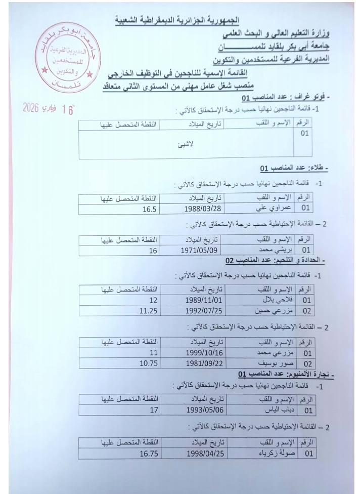 القائمة الإسمية للناجحين في التوظيف الخارجي