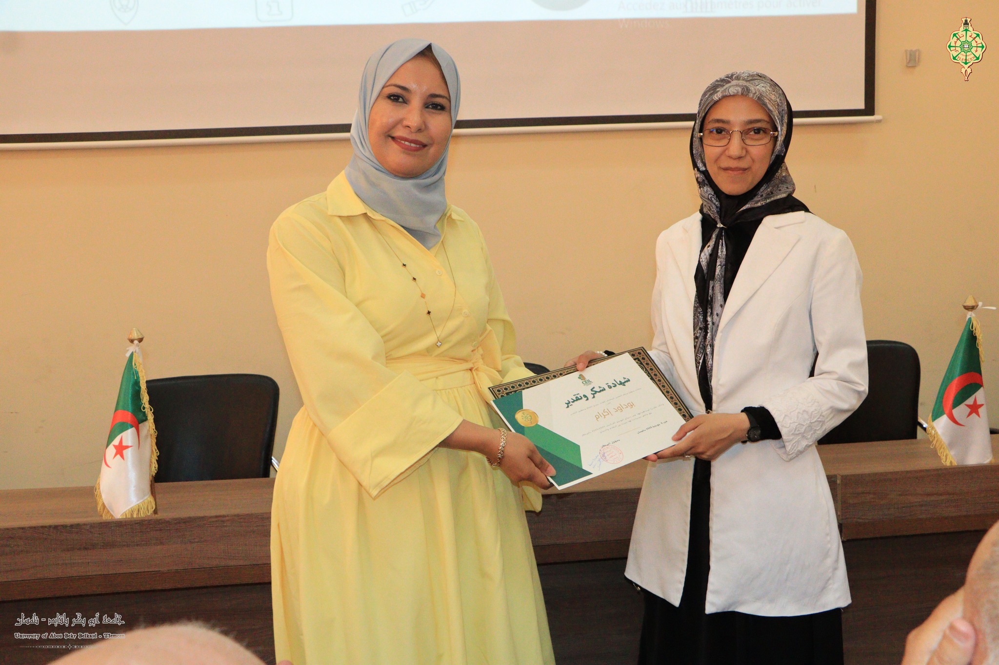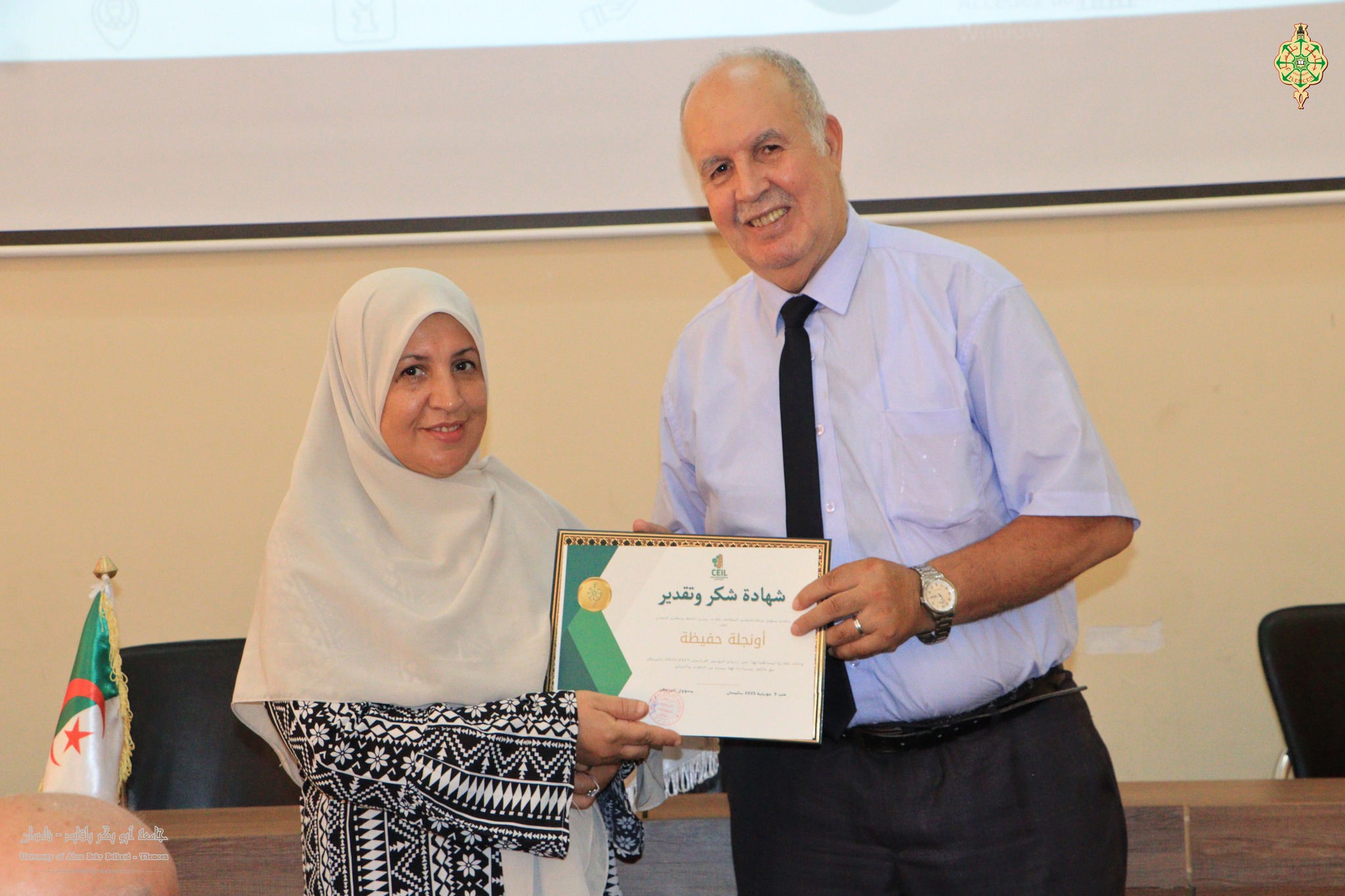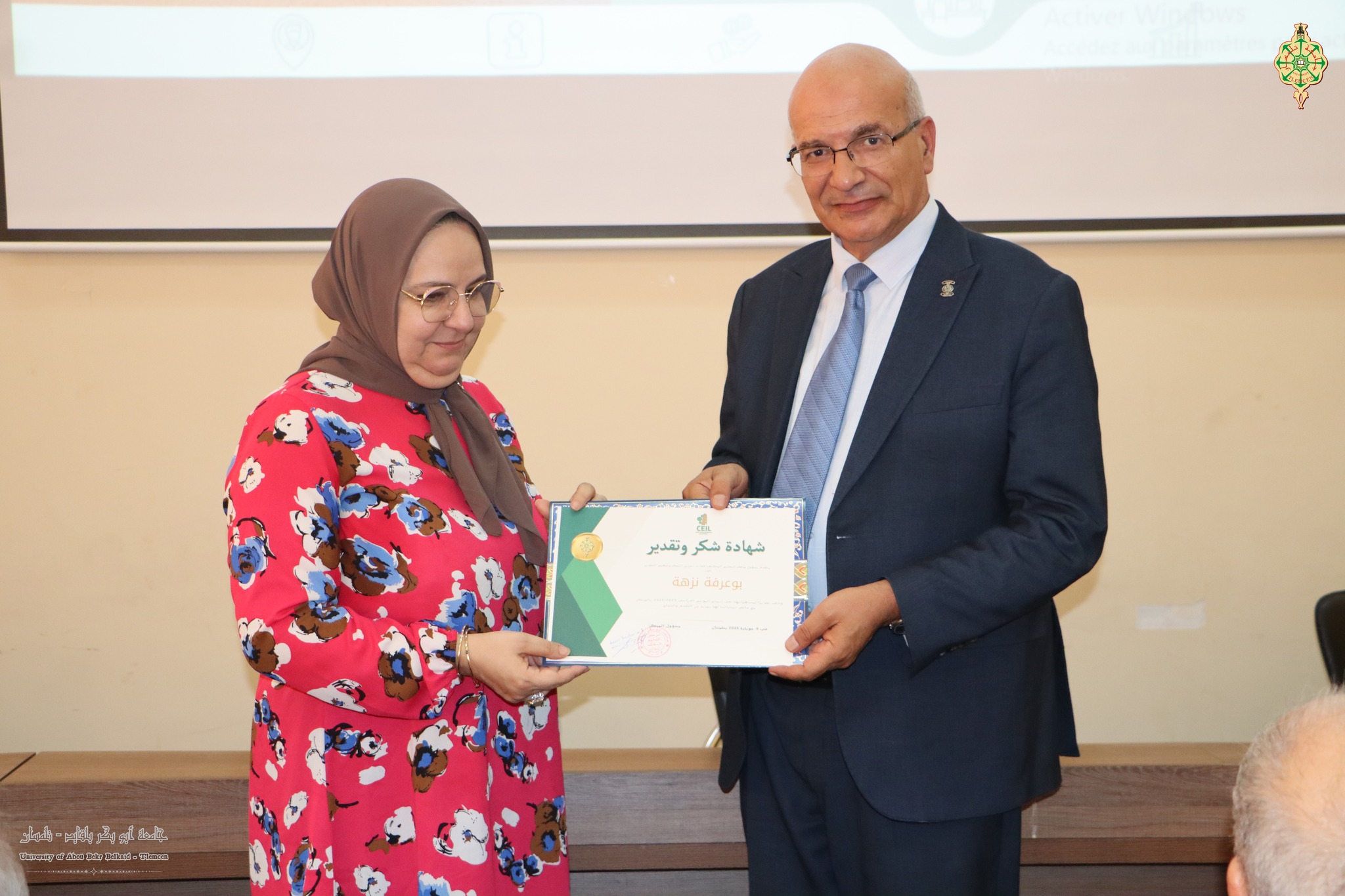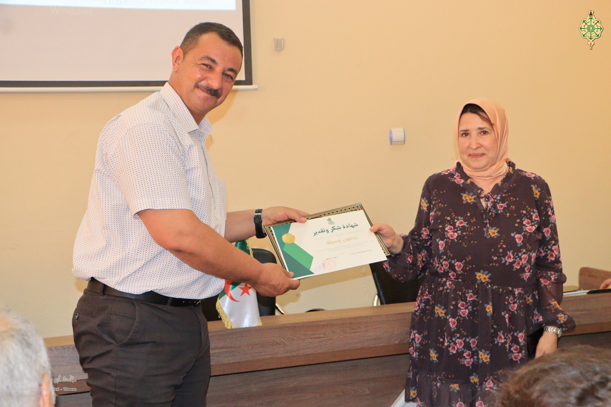 Special recognition was given to Nassira CHAFAA BELAID, Asma BENMALEK, and Hayet SEFI for their contribution to translation teaching for students from Slovakia University. The English language instructors — Mr. HAMZAOUI, Mr. SERRIR, Mr. BERBER, and Mr. BENYELLES — were also honored, as was Mr. Abdelrahim SAIDI, representative of the Spanish language.