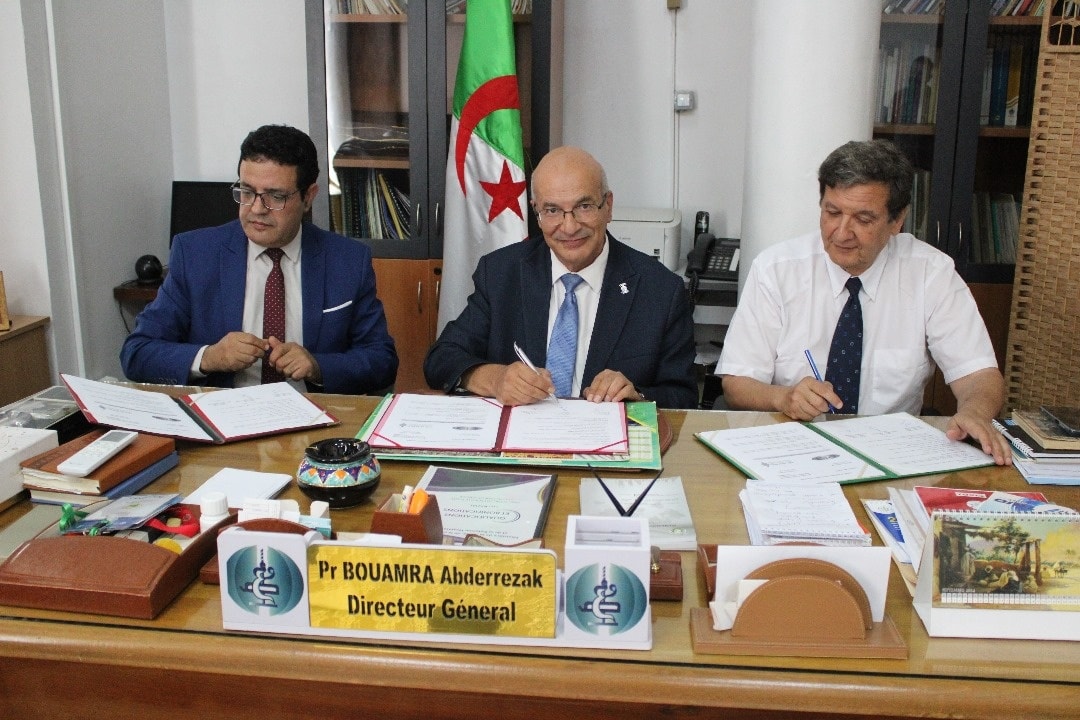 The signing ceremony took place at the Institute’s headquarters in Algiers, under the supervision of the Rector of the University, Pr. MEGHACHOU Mourad , and the Director General of the Institute, Pr. BOUAMRA Abdelrazak, in the presence of the Dean of the Faculty of Medicine, Professor Chakeb Abbi Ayad, along with the heads of the Institute’s technical departments.