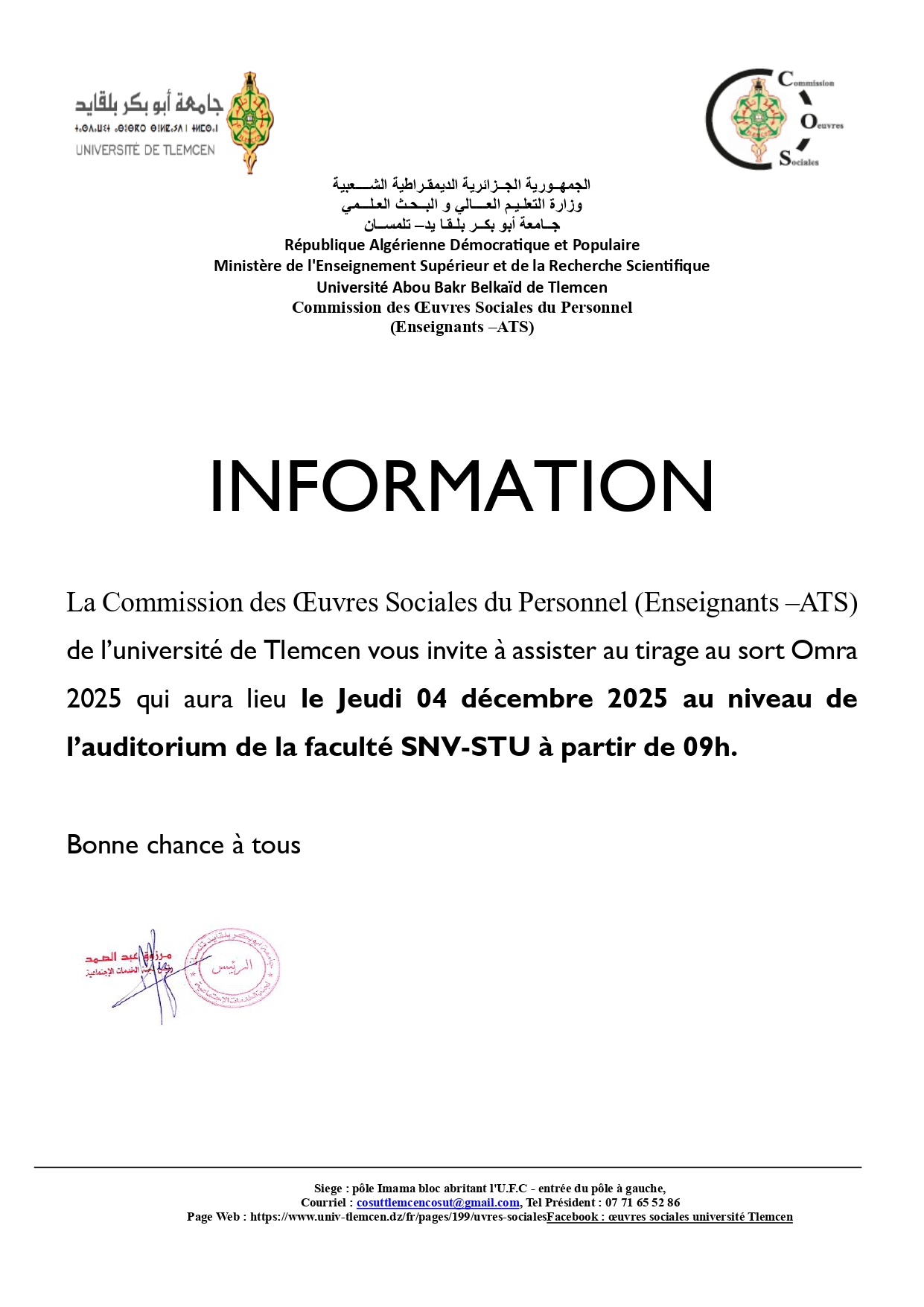 Invitation à assister au tirage au sort Omra 2025