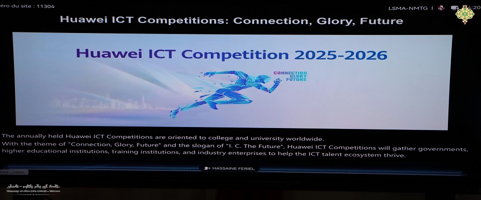 Dans le cadre de la consolidation de la culture de l’innovation et de l’entrepreneuriat chez les étudiants, et conformément aux directives du Ministère de l’Enseignement Supérieur et de la Recherche Scientifique visant à soutenir les jeunes talents dans les domaines des technologies modernes, un rencontre nationale de sensibilisation à distance a été organisée ce dimanche 14 décembre 2025 via visioconférence autour du concours Huawei ICT 2025–2026, sous l’égide conjointe de la Commission nationale de coordination pour le suivi de l’innovation et de l’entrepreneuriat universitaire et des interfaces partenaires, en coordination avec Huawei Algérie, et avec une participation étendue des différentes institutions d’enseignement supérieur à travers tout le territoire national.