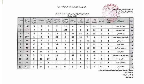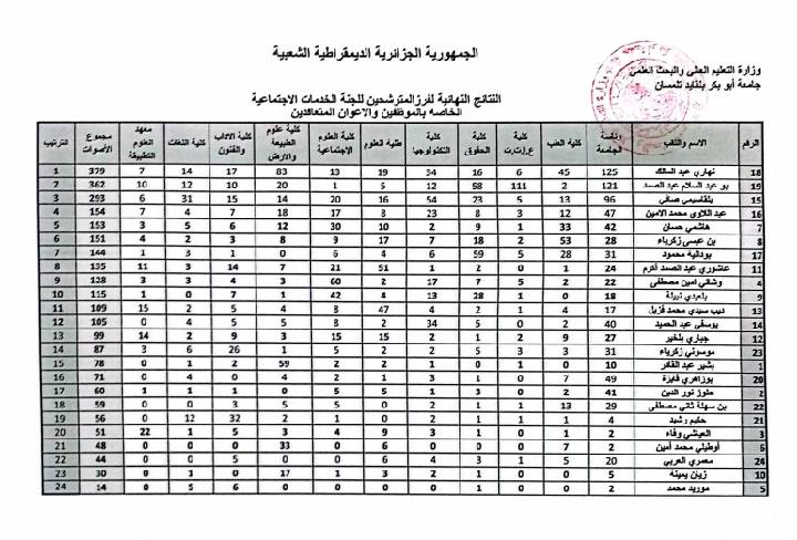 Résultats des élections pour le renouvellement des membres de la Commission des Œuvres Sociales de l’Université de Tlemcen – Année 2026