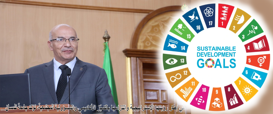 Dans le cadre de sa vision stratégique et de son engagement pour l’excellence académique et la responsabilité sociétale, l’Université de Tlemcen affirme sa volonté de promouvoir un développement durable, inclusif et responsable. À travers cette politique, elle intègre les principes de durabilité dans ses missions d’enseignement, de recherche, d’innovation et de gouvernance, contribuant ainsi activement à la réalisation des Objectifs de Développement Durable (ODD) et à l’amélioration continue de la qualité de vie universitaire".